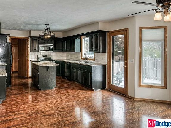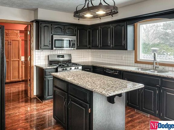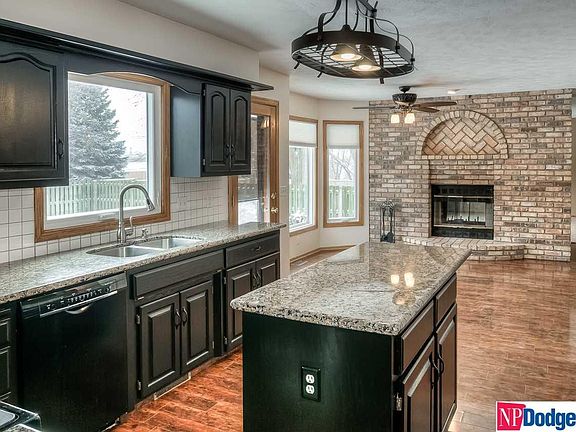 Fabulous west facing 2-story in a great location! Walk to schools, shopping, restaurants & Lake Zorinsky Park! Has large Kitchen w/ lots of cabinets, wood laminate flooring, spacious granite counter-tops, center island & beautiful brick fireplace! Family room has French doors and fireplace w/built-ins! Also has 4-large BR's up w/walk-in closets, Master bath w/whirlpool tub, 4-bathroom locations, Living room & Dining room and main level laundry w/ 3-more pantry's! Finished basement has separate living area w/Rec-room, 2nd Kitchen, 3/4 bath & Bonus room w/walk-in closet. Also includes over-sized garage, level fenced yard w/sprinklers, Newer roof, furnace, A/C, windows and 2-water heaters.