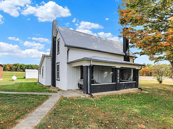 Welcome to country living at its finest! This spacious 4-bedroom farmhouse sits on 6.97 scenic acres of rolling pastures and peaceful surroundings. The inviting covered front porch is perfect for relaxing and enjoying the views. Inside, you'll find beautiful hardwood floors throughout most of the main level, a large kitchen with plenty of cabinet space, and an adjacent dining room ideal for family gatherings. Upstairs, all bedrooms feature newer carpeting for added comfort. The home includes a huge unfinished basement-dry and ready for storage or future finishing to suit your lifestyle. Recent updates include a new furnace, new AC, and a newer water heater. The fireplace adds rustic charm and has been used in the past (not warranted). Outside, this property truly shines. You'll find a small guest house, a 40x60 three-sided lean-to, and a massive 40x80 pole barn with electricity-perfect for hobbies, vehicles, or a workshop. There's also a detached 2-car garage with a huge overhead loft and workshop for everyday convenience. Whether you're seeking a hobby farm, private retreat, or a place to spread out and enjoy nature, this property offers endless possibilities in a peaceful country setting.