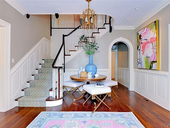 Nestled in the highly sought-after Hampton Gardens, this luxurious and stately 1930's Georgian home has been impeccably remodeled. Offering every amenity, the home features a grand foyer, formal rooms, a custom walnut library, two wet bars/butler's pantry, and a family room with an exquisite limestone fireplace. The stunning kitchen boasts designer appliances, including a La Cornue range, marble countertops, and a vaulted ceiling. The second floor hosts four bedrooms, including a primary suite with a walk-in closet, marble bath, and soaking tub. The third floor offers a large bedroom, reading or craft nook, full bath, and a 29x17 sitting area. The basement level is a private retreat with a gas fireplace, wet/dry sauna, workout room, 1300-bottle wine cellar, and tasting room. Outdoors, enjoy the 20x44 heated saltwater pool, hot tub, and 40-degree cold plunge, all from the spacious bluestone covered porch. The property also features extensive landscaping, custom gates, brickwork, drainage, and hardscape. Additional amenities include a geothermal HVAC system and a three-car garage with an in-law suite/flex space above with full bathroom. This is a rare opportunity to own one of Richmond's most coveted and admired properties. The rear lot, making total lot size of 1.69 acres, includes 5110 Cary Street Road, located at the back of the property. Great spot for additional dwelling, sport or tennis court, or rare greenspace.