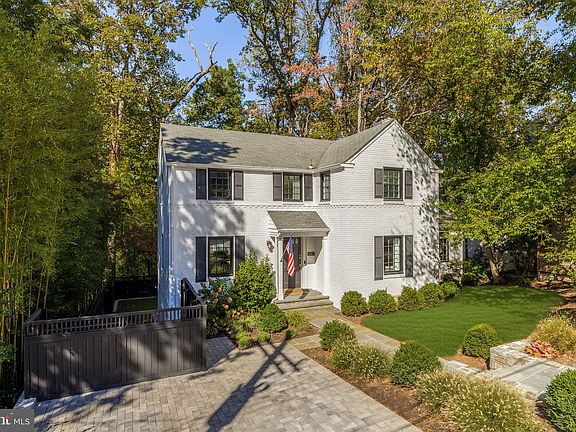 Perfectly positioned in one of Bethesda’s most coveted neighborhoods, 5106 Brookview Drive blends timeless elegance with modern refinement. Set within the sought after Westgate community, known for its tree lined streets, neighborhood pool, and proximity to Westbrook Elementary and Westland Middle School, the Capital Crescent Trail, Little Falls Trail, Little Falls Library and Westbard Square, this classic white brick colonial has been thoughtfully updated to meet the demands of today’s lifestyle while preserving its enduring charm. The home’s inviting curb appeal features manicured, illuminated landscaping; an underground irrigation and drainage system; a new paver driveway; and a flagstone walkway leading to the refreshed white façade framed by dark shutters and new Pella windows. Inside, the residence showcases new millwork, fixtures, and finishes throughout, along with a reconfigured layout that enhances flow and functionality. The gracious foyer opens to formal living and dining rooms in a traditional center hall design. The dining room, enveloped by wooded views and a deep green palette, offers moody sophistication, while the spacious living room centers on a wood burning fireplace and opens to a tranquil private office. The expanded kitchen is a showpiece, featuring white Shaker cabinetry, a contrasting island with honed black stone countertops, and professional grade appliances. A custom banquette, coffee bar, and breakfast area with a built in window seat connect seamlessly to the new deck, ideal for indoor outdoor living. Upstairs, the primary suite includes an enlarged walk in closet and a marble bath with double vanity and glass shower. Two additional bedrooms share an updated hall bath. The lower level offers a large recreation room, a newly finished fitness room, a private guest suite, and a dedicated laundry. Outside, the fenced rear lawn features a generous patio for al fresco dining, a new deck, and a custom storage shed. Blending thoughtful design, quality craftsmanship, and an exceptional location, 5106 Brookview Drive embodies the best of Bethesda living.