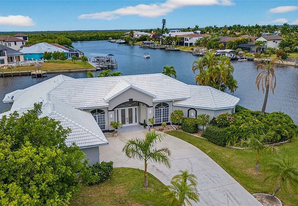 Relax poolside while watching boats pass along the intersecting canals, or enjoy sunset dinners prepared on the brand-new built-in outdoor grill. Just steps away is your private composite dock and lift, with quick access to Cape Harbour and the Gulf via the Spreader Canal.