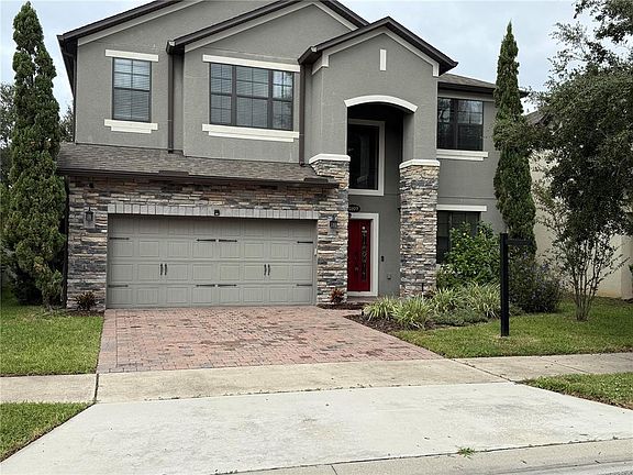 One or more photo(s) has been virtually staged. - Seller may consider buyer concessions if made in an offer - EASY SHOW - Impressive 5-bedroom, 3-bathroom two-story home with stone accents, ideally located in the serene Narcoossee Village Subdivision with no rear neighbors and peaceful water views featuring a fountain. Conveniently located near Medical City and Lake Nona area. This spacious residence offers plenty of room for a large family or those seeking generous living space, including a large backyard. The gourmet kitchen is equipped with brand-new stainless-steel appliances (2024), granite island with seating, a dining area, and a Butler’s Pantry with upper and lower cabinetry. Additional upgrades include wall cabinets and a utility sink in the laundry room, built-in shelving in the 3-car tandem garage, new hot water heater (2024), and added shelving in the oversized master closet. The expansive primary suite offers a room for a sitting area, and the luxurious bath features a soaking tub, separate shower, and enclosed water closet. A full bedroom and bathroom on the main floor are perfect for a home office or in-law suite, and the upstairs loft provides an ideal second family room or game area. Enjoy the convenience of living just minutes from all that is available in Lake Nona and Saint Cloud. Schedule your private tour today!