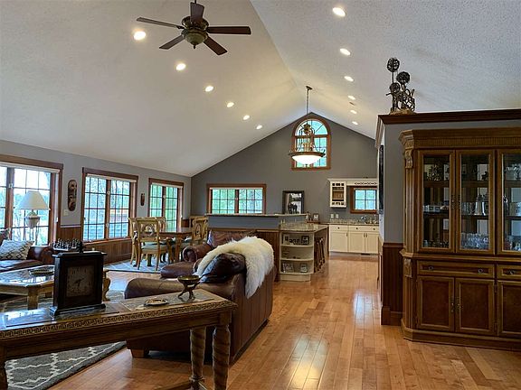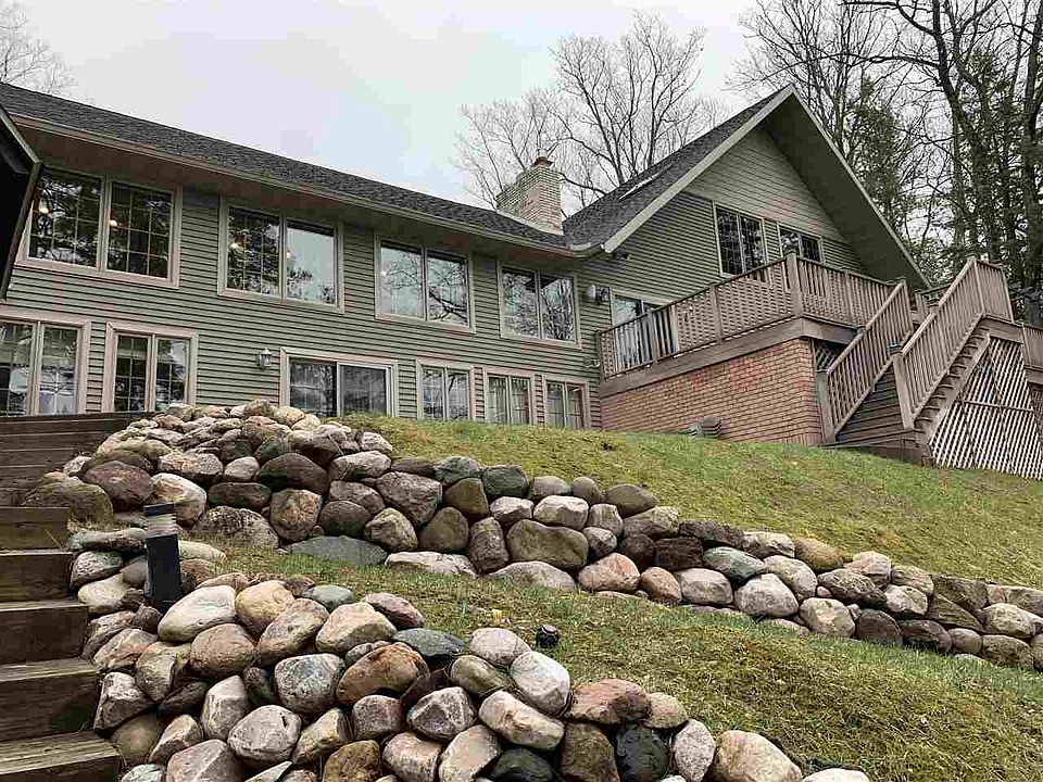 Immaculate executive open concept home! Views of West Lake from almost every room. Three gas fireplaces, walk-in pantry, granite counter tops, hardwood floors, and tiled floors with in lay accents. Master en suite. Loft family room with wet bar, fireplace, office space, and walk-in storage. Walk-out lower level with family room, bath, tiled hot tub room, exercise room and storage. Enjoy the maintenance free deck or the patio area with brick outdoor custom grill and gentle stairs to the water frontage with dock and beach house. Beautiful extensive landscaping by Cheshire, both in the front and the back of home. Four plus car garage with attic walk-up storage. Circle paved drive! Perfect home to entertain year round but yet comfortable for some peace and quiet!
