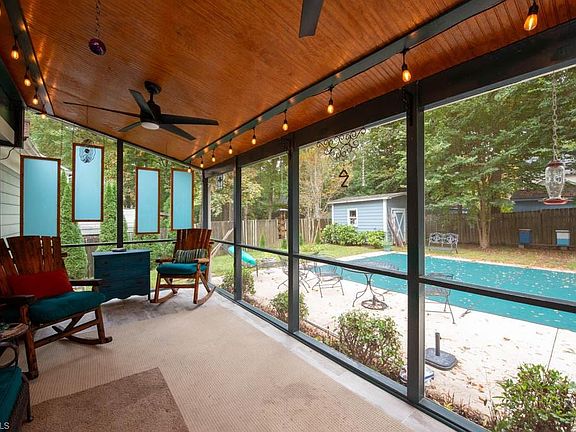 MOTIVATED SELLERS, BRING ALL OFFERS! Upon entering, you'll find a spacious living area & a tranquil outdoor pool area with a screened-in porch that offers a picturesque view of the pool. This home exudes warmth and sophistication, from the contemporary, updated bathroom in the Primary Bedroom to the expansive walk-in closet. The dining room seamlessly flows into the Great Room, complete with a gas log fireplace & a chic brick profile. The kitchen opens up to a charming breakfast room, featuring a bay window with a stunning pool view. The 2nd & 3rd bedrooms are thoughtfully situated for privacy, with a conveniently located full bathroom just outside their doors. The side of the home conveniently features an enclosed storage area with exterior access. (Pool pump is 2 years old, the liner of the pool is 7 years old, the cover of the pool is 2 years old. 16x32 3-8ft deep. Sellers have used and maintained pool every summer)