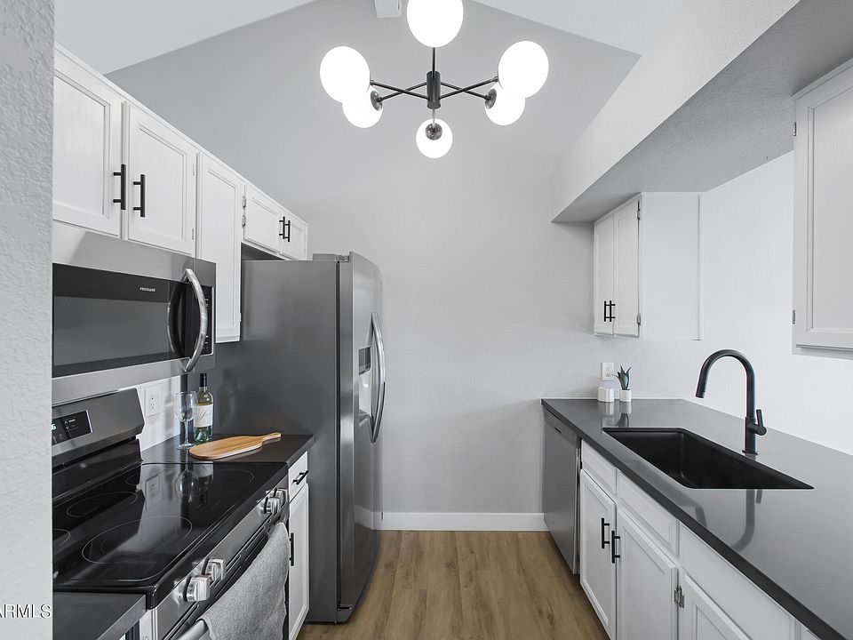 Step inside to see a completely renovated, modern home complete with new LVP flooring, new quartz countertops throughout, a new bathroom, and contemporary fixtures throughout.