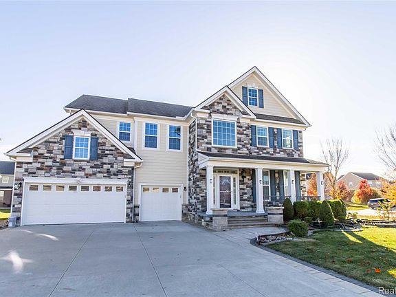 Open House, Sat Nov 15, 11:30 AM-2:30 PM, Sun Nov 16, 12:00 PM-2:30 PM, North-facing, Beautiful Home located in one of the finest subdivision in Canton, "The HAMLET MEADOWS "by Toll Brothers in Canton. Westport Heritage Model | Built 2018 | Corner Lot | 3,820 sq. ft. + 1,800 sq. ft. unfinished basement. Plymouth-Canton Schools. This beautiful home features 5 Bedrooms, 3 Full Baths (First Floor Bed and Full Bath), 3 Car Grg, extended Driveway, extended Gourmet Kitchen, Library, Living Room, dining Room, nook, Great room, hardwood floorings on most of the first floor. The first floor also features a bedroom & full bath. Gourmet kitchen with Quartz countertops, Soft-closing, KitchenAid appliances, Gas cooktop, oven, microwave, dishwasher. a large island with room for seating, tile backsplash, stainless steel appliances, and a pantry.All appliances included! Beautiful home offers elegant architecture and premium finishes throughout. Move-in ready with fresh paint, new carpet, Recessed can lighting, and ceiling fans in all rooms, including the office. Window Treatments: Cellular shades and custom shutters in select areas. Upstairs, a Huge Loft, 4 bedrooms, Laundry(2nd Flr), The Master Bedroom includes a Large Walk-in Closet, Private Bath with a Dual-sink, Roman Tub, and Shower. Laundry Room on the Second-floor location with cabinetry, sink, and upgraded tile flooring. Basement with rough and plumbing, Battery-backed sump pump, Egress window, humidifier, and upgraded large-capacity water heater. Brick Patio with Expansive 1,000 sq. ft. area with gazebo and fire pit, ideal for entertaining in the backyard. Professionally landscaped front & back yard, Exceptional location, close to Schools, freeways, shopping, restaurants, access to tennis courts, and clubhouse. A must see!
