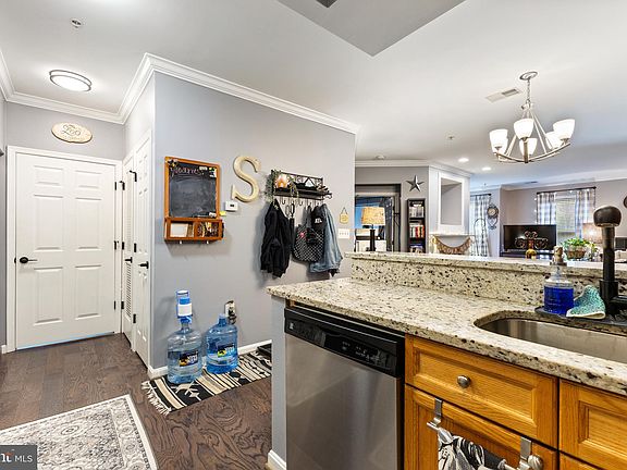 Welcome to Cameron Station! Beautifully maintained and spacious 1 bedroom / 1 bathroom condo offering comfort, convenience, and true move-in ready condition. The updated kitchen features granite countertops, stainless steel appliances, recessed lighting, and a breakfast bar. The open living/dining area includes gleaming hardwood floors, crown molding, recessed lighting, and a gas fireplace. Fresh interior paint (2022) and new custom blinds enhance the modern, well-cared-for feel throughout. The spacious bedroom includes a walk-in closet plus an additional closet, a lighted ceiling fan (2025), and excellent natural light. The full bathroom offers a large granite vanity, updated lighting and hardware (2022), and a tub/shower combination. In-unit washer/dryer included — new in 2024. Enjoy a private patio overlooking a quiet courtyard. Additional upgrades include a new A/C system (2023) and new hot water heater (2022). Garage parking space and a storage unit convey. Fantastic location with easy access to I-95/395/495, Metro, and public transportation. Minutes to Old Town Alexandria, the Pentagon, DC, Arlington, and Reagan National Airport. Close to Brenman Park, local shops, restaurants, and community amenities. Free shuttle service to Van Dorn Metro and Sunday farmers market. Community Amenities: Clubhouse, fitness center, game room, meeting room, and outdoor pool. Condo Fee Includes: Water, sewer, trash, and snow removal.
