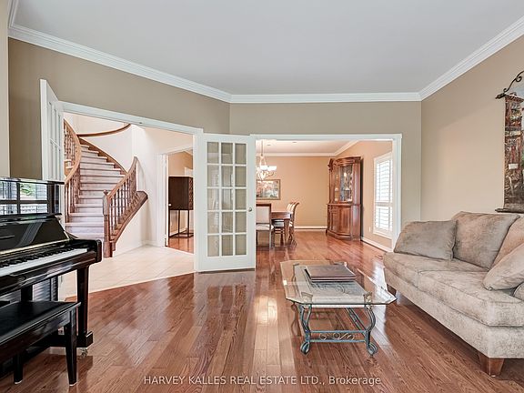 Immaculate, well-maintained Daniels home in Prestigious Credit Mills on Premium lot. Sun-filled home with warm south-west exposure. Approx. 4,500+ sq ft above grade (per MPAC) living space, with large principal rooms, open concept ideal for entertaining, large windows with wooden Californian shutters and hardwood floors throughout the home. 9+ ft ceilings on main level, with oversized custom-built kitchen, high-end appliances. Custom stone fireplace in sunken family room, skylight in second family room, bright living room, impressive dining room for large family gatherings, and large laundry room and separate storage room complete the massive main floor. Two separate staircases to second floor. Master bedroom retreat with step-down sitting/office area, balcony overlooking backyard, 5-piece ensuite, laundry chute to laundry room, and massive 27-foot walk-in dressing room/closet...must be seen to appreciate. Other bedrooms have own ensuite bath, plus a second laundry chute complete the second floor. Oversized recreational/games room on third floor loft. Partially finished basement with cedar sauna, new furnaces and air conditioner (2024). Backyard SW exposure with heated saltwater pool (new pool liner in 2025), landscaping and beautiful Travatine marble tile patio. 3 car tandem garage, inground sprinkler system, home alarm, and central vac. Prime location with easy access to HWY 403/401, nearby GO stations, close to coveted top-rated schools (John Fraser SS, Aloysisus Gonzaga CSS), UTM, Credit Valley Hospital, and much more. Make this magnificent home your dream home.