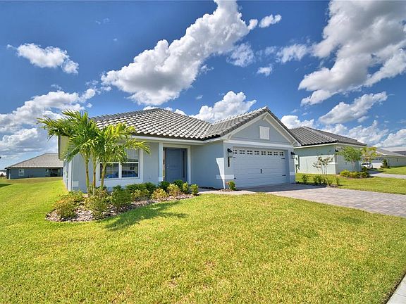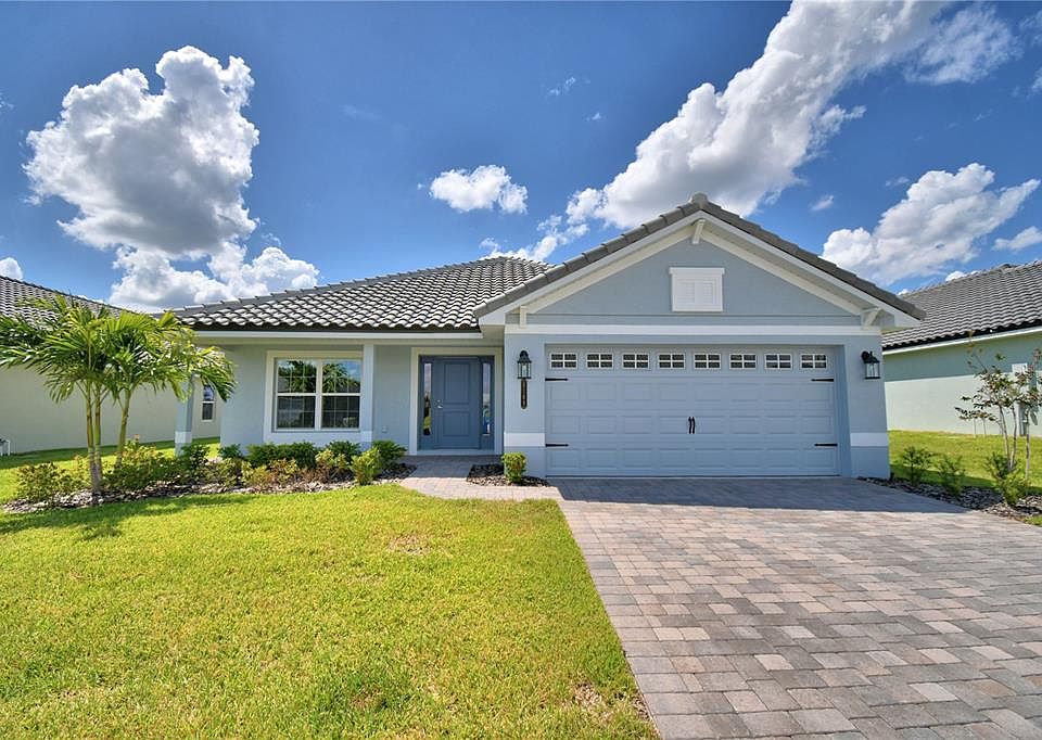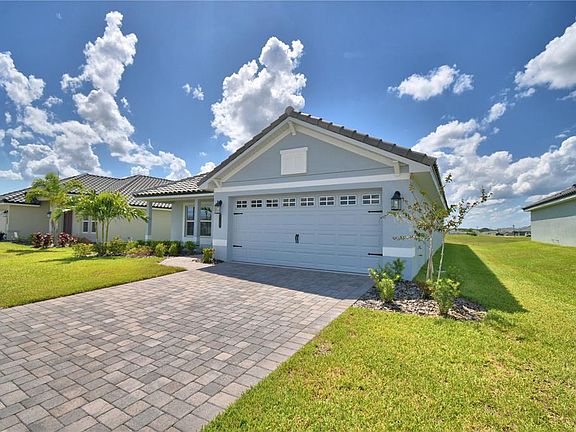 This 2200 Sq ft home has 4 bedrooms and 3 baths, 2 car garage, lots of entertaining space and luxurious details throughout! Upon entering you will enjoy the open concept great room/dining room/kitchen with 10’ ceilings, wood look plank tile in main areas, granite countertops throughout, 5 ¼ inch baseboards, wainscotting in dining room and much more. The owner suite is spacious with Tray Ceiling w/crown molding. Ensuite has double sink vanity with extra storage drawers, linen closet, tile separate shower w/glass door, nice tub, etc. The home also has a second owner suite with ensuite and a large walk-in closet. 2 other bedrooms in the home share a oversized bath with linen closet, tub-shower combo, separate toilet, double sink vanity with storage drawers. The exterior of the home has a tile roof and patio paver driveway, and patio paver covered lanai. This community is gated, has a gorgeous clubhouse with fitness center, pool overlooking the lake, basketball court, tennis court, playground, and community boat ramp. Photos are of a finished 2200 . Actual colors and finishes may vary.