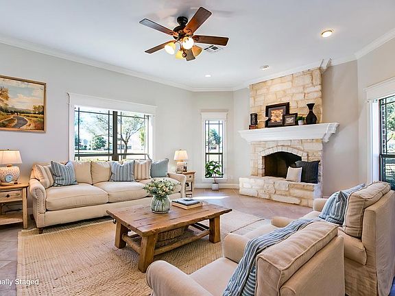 This stunning 5-bdrm, 3.5-bath home has been beautifully refreshed w/new interior & exterior paint & new flooring throughout most of the home, fresh, modern & move-in ready. An inviting open living & dining area welcomes you, framed by a wall of windows overlooking the BCC golf course. This home was built to be stunning w/beautiful ceiling details & generous moldings throughout. And the same quality extends to the large kitchen/breakfast island, spacious laundry room & main suite bath w/large walk-in shower & oversized tub. Step onto the covered patio to relax or entertain while enjoying the tranquil water feature & scenic backdrop. The open kitchen flows seamlessly into combined living/dining areas anchored by a striking stone fireplace, perfect for gathering & unwinding. Golfers will love the convenience of being right on the course, w/ easy access to tee time just steps away. With 5 spacious bedrooms, there's plenty of room for family or guests to feel right at home.