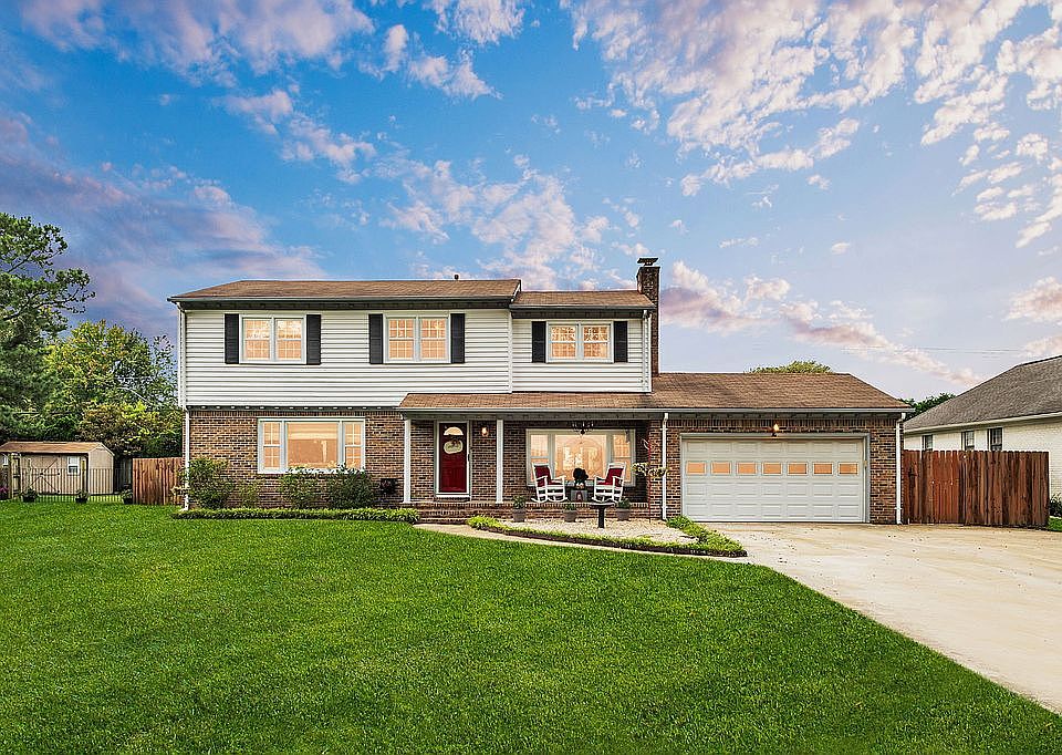 This spacious 2,200 sq. ft. residence sits at the end of a quiet cul-de-sac in the heart of Kempsville, nestled on a generous 1/3-acre lot. The property boasts a long driveway with parking for four cars, a two-car garage, lush front yard landscaping with mature blueberry bushes, and in-ground sprinklers for easy maintenance.