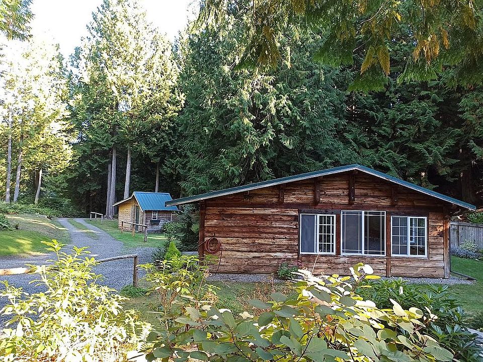 Think the best summer camp vacation ever & then dream of being there everyday but with every modern comfort. You will not believe this magical property. The main house is a mid-century from 1949 with stone fireplace, stunning old hardwood floors, built in banquet wood dining table & more charm then you can imagine. How about another absolutely darling log cabin with 2 bedroom suites, cozy stove & again wood floors that glimmer & shine. Oh wait then yet another log cabin with romantic bedroom encased in wood. All homes can be lived in full time with kitchens/laundry etc. Super garage/shop, garden & so many charming outbuildings your head will spin. All in a sunny clearing surrounded by stunning evergreens & just a hop to Langley village.