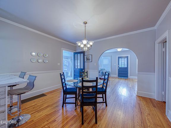Welcome to this charming and classic Fountain City ranch. A one-level home that beautifully captures the ease and character of a simpler time while offering all the comfort and updates of today. Nestled on a private, level, over-sized, corner lot, this inviting home draws you in with its timeless curb appeal and peaceful surroundings. Inside, you'll find gleaming original ¾-inch oak hardwood floors, smooth 9-foot ceilings, and graceful arched openings that connect the living and dining rooms in true vintage style. A bright, stenciled hardwood- floored sunroom is perfect for morning coffee or curling up with a good book. It adds warmth and personality to the space. The updated kitchen features stainless steel appliances and an alcove perfect for a coffee bar! Down the central hallway, three comfortable bedrooms and a well-appointed bath offer a calm retreat at day's end. There is also the perfect spot to add a second full bath if needed. The unfinished basement includes a one-car garage with plenty of storage. Outdoors, a covered porch with a vaulted wood beadboard ceiling overlooks the partially fenced backyard is ideal for children, pets, or simply relaxing at sunset. Thoughtfully maintained and filled with charm, this Fountain City gem offers the perfect blend of nostalgia and modern comfort - and it's ready to welcome you home!
