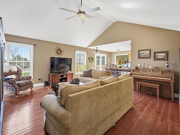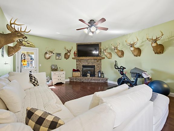 This beautiful 3-bedroom, 2-bath ranch offers the perfect blend of comfort and functionality. Step inside to find a spacious living room and a cozy den featuring a stunning stone fireplace—ideal for relaxing evenings at home. The kitchen offers plenty of workspace and a great eat-in area at the bar, perfect for casual meals or morning coffee. The primary suite is a true retreat with an updated bath that includes two separate vanities, a walk-in shower, and a relaxing soaking tub. A convenient utility room adds everyday practicality. Enjoy outdoor living on the covered side porch, a great spot for grilling or unwinding after a long day. In addition to the attached 2-car garage, there's also a detached 1-car garage, offering extra parking or workshop space. Located in a peaceful cul-de-sac, this home combines comfort, convenience, and charm—all in one!