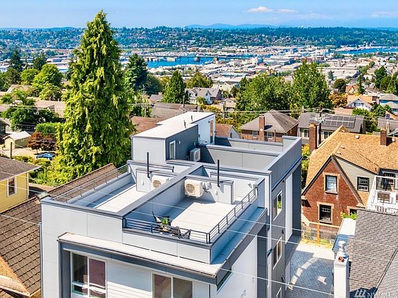 Fully Furnished- new construction 2 bedroom, 2 bathroom townhouse right on the top of Phinney Ridge! Modern easy living- amazing location, breezy commute, all hardwood floors, separate WFH office, full 2nd bath, A/C, and 180 degree views of the canal, sound, and olympics from your rooftop deck. Directly across the street and out all your windows is lush Woodland Park. No car needed for this hip spot- head out your door to all the best restaurants, bars, cafes, parks, & more!