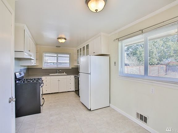 Desirable Puyallup rambler. Over 1,000 sq ft with hardwood flooring throughout. Crown molding and wainscoting add to the classic style of this well built home. The Large living room leads to French doors open to the flat fenced backyard. New roof in 2008, triple pane vinyl windows, 1 yr old hot h20 tank and a 5 yr old gas furnace make this a real gem!