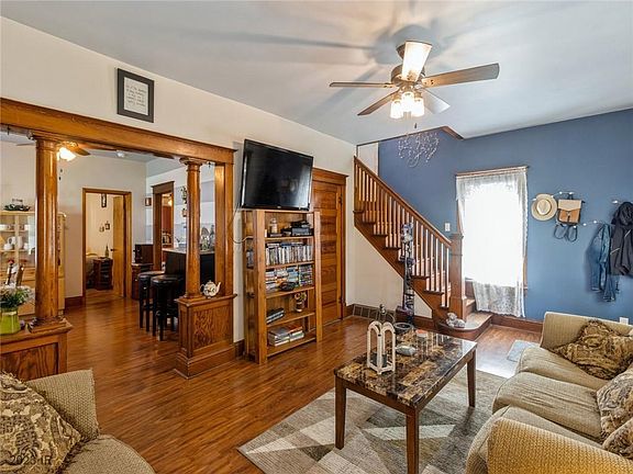 You don’t want to miss this 3 bed 2 bath move-in ready home on a quiet street! LVP flooring, vinyl windows, newer water heater, updated electrical panel & all appliances included in sale! The front porch immediately invites you to sit & enjoy the peaceful neighborhood. Entering the front door you are greeted by an open staircase, large living room w/ original built-in pillars & woodwork. A large dining room & adjoining kitchen are great for entertaining. A main floor bedroom & ¾ bath finish out the first floor. Upstairs you will find 2 more bedrooms & a full bath. Ample closet & storage space not typically found in homes this age! A beautifully shaded back yard with single garage that could shine. Call for a private showing today.