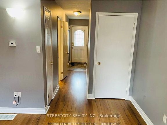 Don't miss!!! Updated 3 bedroom townhouse. Prime location within the complex-End unit & backs onto greenspace. NEW Washer ,Furnace (2024) . Large kitchen & eating area, sliding doors from large living room to a private deck. The kitchen has been updated and has an awesome stone backsplash, plus tons of storage and work space with a separate dining area. Upper level features a huge master bedroom, 2 additional bedrooms & updated bathroom newer vanity & ceramic flooring. The lower features a spacious family room with gas fireplace & lots of storage space. Well-maintained complex close to schools with easy access to the 401, shopping, schools, transit and more.