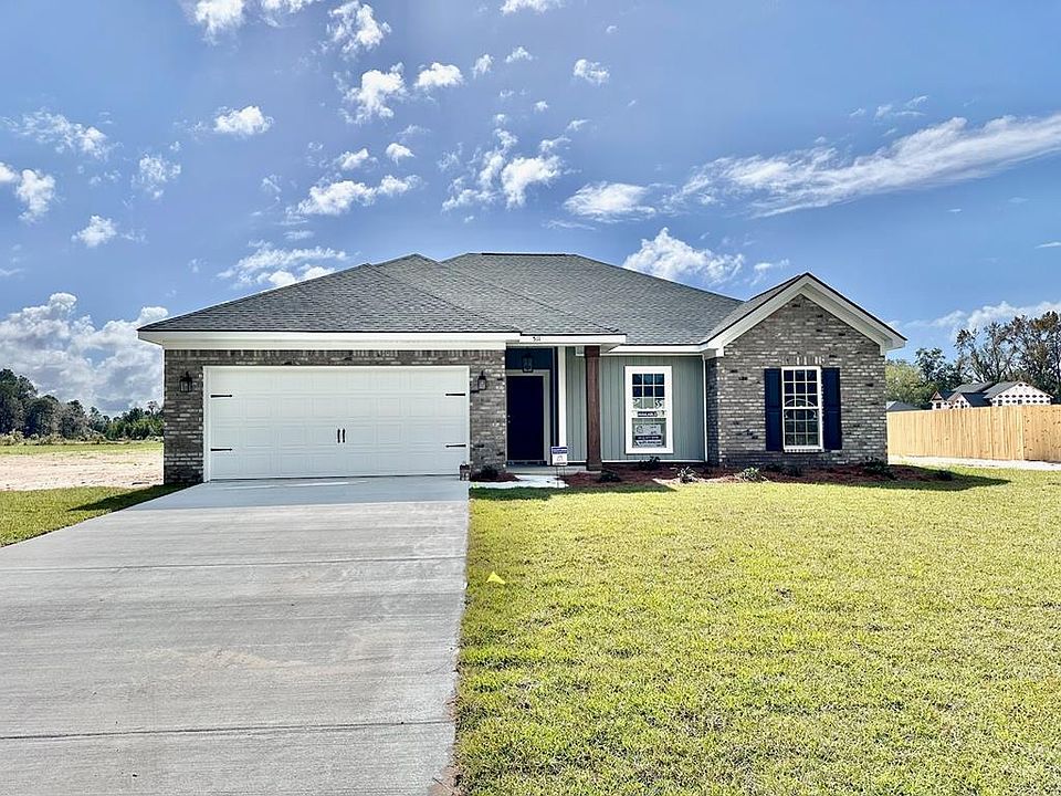 This charming 4-bedroom, 2-bathroom ranch, boasting FOUR SIDES BRICK with low-maintenance vinyl accents, is located in the highly sought-after Palmer Place gated community. Cross the threshold into a an open, stylish layout featuring an electric fireplace as the focal point in the great room. The expansive kitchen featuring attractive island layout, granite countertops, major appliances, and large corner pantry, is lovely and spacious. The primary bedroom includes two walk-in closets, a linen closet, and private bath with separate tub and shower. The other three bedrooms, situated on the opposite side of this split floor plan allow for maximum privacy and have ample closet space. A breezy, covered back porch is a great spot to relax and enjoy the back yard. Attached two-car garage. Easy commute to Fort Stewart. Artistic rendering(s) is for informational purposes only. Actual floor plans and inclusions may vary.