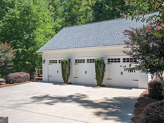 Meticulously maintained and beautifully appointed, this 5 bedroom, 4.5 bath Cape Cod is nestled on 7.91 acres in the highly sought-after Alcovy Lakes subdivision. The main level showcases gorgeous hardwood floors and a two-story fireside family room with built-in bookshelves. The granite kitchen is a chef's delight with tile backsplash, under-cabinet lighting, stainless steel appliances including double ovens, cooktop, microwave, and refrigerator, plus a breakfast room, breakfast bar, and butler's pantry. Additional spaces include a formal dining room, formal living room/office, and an oversized master suite on the main with a coffered ceiling, large walk-in closet, screened porch access, and a spa-like bath with dual granite vanity, tiled shower, and jetted tub. A spacious mudroom with built-in cabinetry and laundry sink plus a half bath complete the main level. Upstairs features a wide catwalk with hardwood flooring overlooking the family room, three generous bedrooms, two full baths and a bonus room. The finished terrace level offers incredible versatility as an entertainment space or in-law suite, complete with a family room, eat-in kitchen with stainless appliances, bedroom, tiled bath, a flex room currently used as a gym and additional unfinished storage area. The exterior is equally impressive with a full-length rocking chair front porch, side entry two-car garage, detached three-car garage, screened back porch, two decks, and a covered patio. Outdoor living shines with an 18x36 gunite pool featuring stacked stone waterfalls and an automatic cover, hot tub, firepit, and approximately 6 wooded acres providing complete privacy. Move-in ready with a newly installed architectural roof, this home is conveniently located near downtown Monroe, Athens, Social Circle, Hwy 78, and I-20.