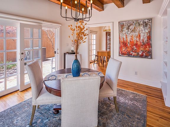 Welcome to this impeccably maintained and thoughtfully upgraded Territorial-style condo, designed by Sharon Woods and located in one of Santa Fe’s most desirable historic neighborhoods. Only 3–4 blocks from both Canyon Road and the Plaza, this home offers true walkability to world-class dining, galleries, shopping, and cultural experiences—making a car optional, yet a private garage is included just steps from the front door, a rare and highly coveted amenity on the Eastside.