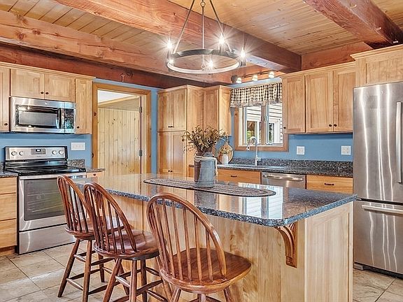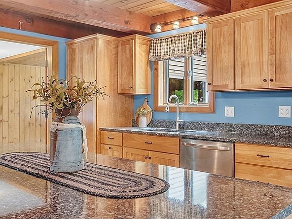 One owner- first time on the market! This stunning 4-bedroom, 1.5-bath residence situated on just under a 1.5-acre lot surrounded by conservation land offers scenic town views, tranquil sunsets, and access to hiking trails. The well-organized mudroom provides easy access to the kitchen, exterior patio, and garage. With a chef's kitchen equipped with two pantries, a dining room with patio access, and a spacious living room featuring post and beam accents and skylights, this home offers an ideal setting for relaxation and entertainment. Additionally, a first-floor bedroom and three upstairs bedrooms provide ample living space. With a spacious layout, spectacular basement bar, and game room, entertaining is effortless. Enjoy the convenience of nearby highways, 1/2 mile to the hospital, and downtown shopping, making this property a perfect blend of nature, convenience, and elegance. Make this home and check it out today!