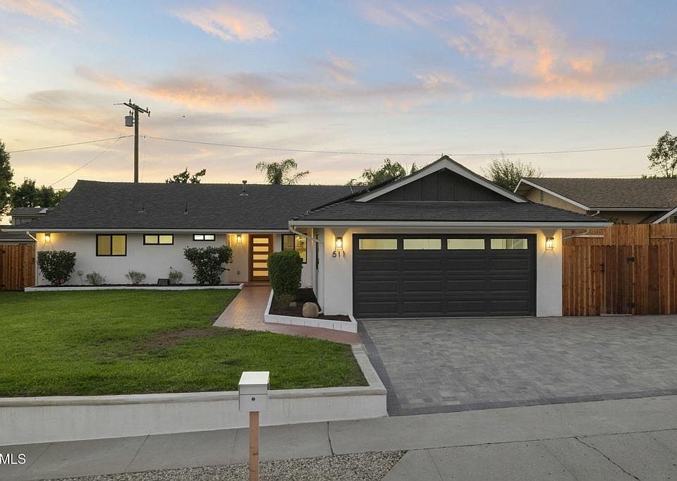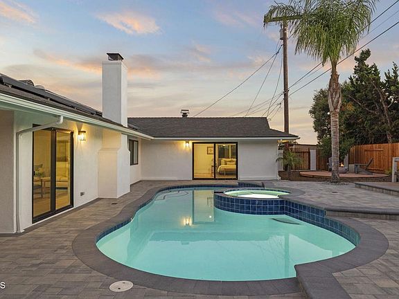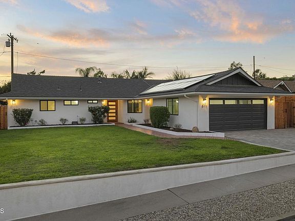 Welcome to your Camarillo Heights dream home!Tucked away on a peaceful cul-de-sac with scenic mountain views, this single-level 4-bedroom, 3-bathroom residence has been completely reimagined from top to bottom with every detail is NEW and designed to impress.Step inside to a stunning open-concept living space featuring luxury PVC luxury flooring, a cozy fireplace with a wood mantel, skylight, recessed lighting & ceiling fan, and sliding doors that fill the home with natural light and offer a peek at the sparkling pool. The living and dining areas flow seamlessly into the chef's kitchen, showcasing a large quartz island, floating wood shelves, stainless steel DACOR luxury appliances, range hood, and a stylish butler's pantry complete with wine fridge, for the ultimate gorgeous kitchen! The home features two primary suites, each with recessed lighting, ceiling fans, large closets, and beautifully finished en suite bathrooms highlighted by black accent fixtures, designer tile, and enclosed glass showers. The back primary bedroom looks out to the pool and mountain views! Two additional spacious bedrooms offer ample closet space and modern touches throughout.Outside, enjoy new stucco, fresh exterior paint with crisp white and black accents, a new paver driveway, and a striking modern wood front door all giving curb appeal! The backyard is an entertainer's paradise with a fully renovated pool and spa, new equipment, pavers surrounding the pool, and a raised deck ideal for lounging or having a live band to host parties! Enjoy mountain views and nearly 10,000 square feet of outdoor living. Private courtyard areas for added charm on the side of the home, all NEW wood fencing was also completed. Additional upgrades include, NEW 3 zone HVAC system, a brand new 220 electrical panel, all NEW electrical wiring, NEW PEX plumbing, interior fresh paint and baseboards, a finished detached garage with laundry space! Did I mention the Solar panels, NEST thermostats, and all NEW windows and doors! This Camarillo Heights gem is truly turnkey and ready for its next family, come experience it in person to appreciate every detail as nothing was overlooked! See it today!