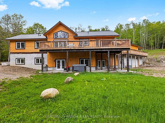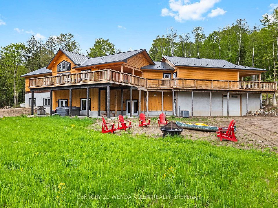 Nature Lovers Dream! **Custom Log Home on 6.5 Acres Near Bancroft & Lake Baptiste** Discover this rarely available, custom-built log home nestled on a stunning 6.5-acre lot just 10 minutes from Bancroft Airport and only 2 minutes from beautiful Lake Baptiste. Surrounded by mature, lush greenery, this serene retreat offers unmatched privacy and endless potential. Whether you're seeking a year-round residence, a cozy seasonal getaway, or a high-return investment property, this unique home delivers. Perfectly suited for a luxury Airbnb, with abundant outdoor space, private walking trails, and tranquil views throughout. Step inside to approximately 4,000 sq ft of thoughtfully designed living space, including 6 spacious bedrooms and 5 bathrooms. The bright, open-concept main floor features treetop views from every room, soaring cathedral ceilings in the great room, and a beautiful fireplace for cozy evenings. A chef-inspired custom kitchen boasts a center island, and plenty of room for entertaining. A dedicated home office provides a quiet space for remote work with separate entrance. The fully finished, soundproofed walk-out basement offers a separate living space complete with three bedrooms each with its own 3-piece ensuite plus a large recreation area with a kitchenette and charming brick fireplace. Outside, enjoy the expansive wrap-around deck, a lower-level patio with hot tub, and a circular driveway leading to a 2-bay garage with carport and ample parking. Move in and enjoy the peace and privacy of the country side or tap into the property's incredible income potential! Designed with accessibility OR multi generational families in mind! **Extras:** Carport or wash bay, heated workshop or garage, Energy efficient-Outdoor wood boiler with propane furnace backup, GENERAC GENERATOR, durable steel roof. OVER 1.8 M IVESTED HERE! Book your viewing today!