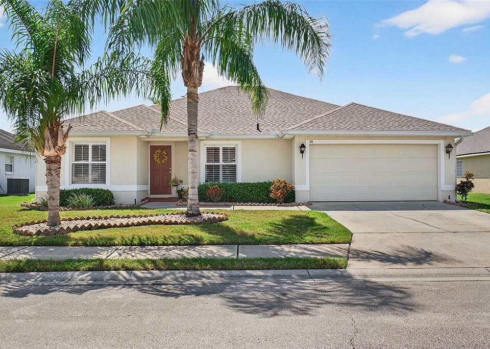 Your private poolside retreat in gated Hunters Crossing! Over 1,900 SF of living area in the gated community of Hunters Crossing and located in the desirable Lake Gibson school district! This spacious 4-bedroom, 2-bath home features a formal dining area, breakfast bar and a huge great room with high ceilings. The inside laundry room offers plenty of built-in cabinetry for extra storage. You’ll love that this home has all hard-surface flooring and no carpet—ideal for pets or those with allergies. Updates include newer appliances and a roof installed in November 2024. The backyard is your own private oasis — complete with a screened patio, sparkling inground pool, lounging deck, built-in firepit with seating area and a storage shed, all surrounded by 6’ white PVC fencing for privacy. Enjoy this one-owner, well-maintained home in a gated community conveniently located near shopping, restaurants, golf, schools and easy I-4 access for commuting to Tampa or Orlando.