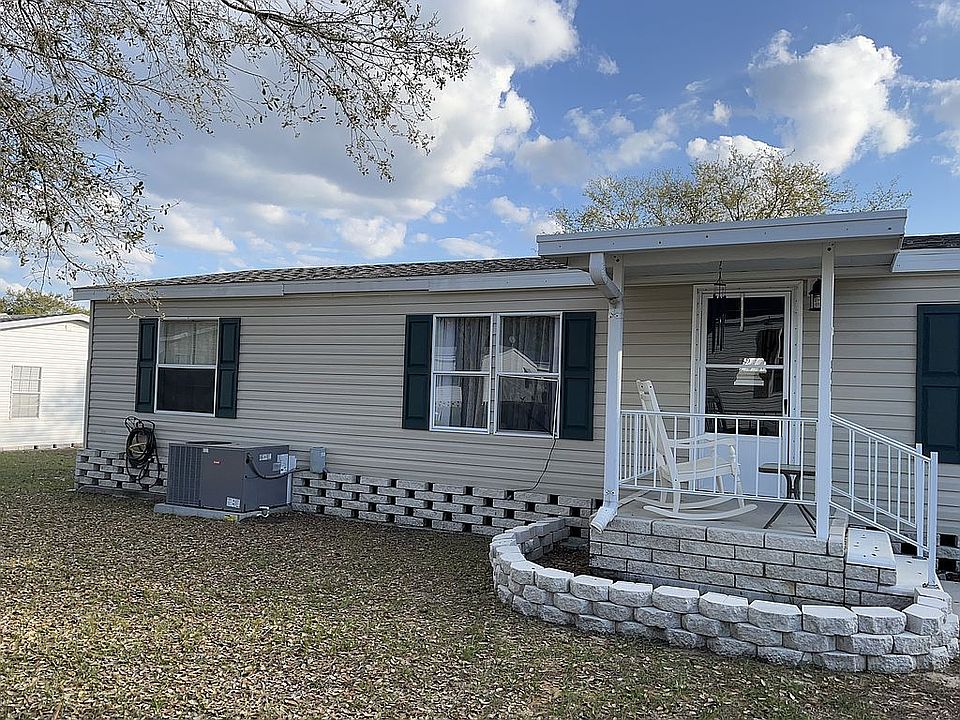 Beautiful stone accent wall in living room. Covered parking. Quiet suburban community. Home is located in a 55+ community in Fruitland Park. Active community and clubhouse. Pet friendly! Twice weekly trash pick up included in lot rent. Lot rent approximately $1000.