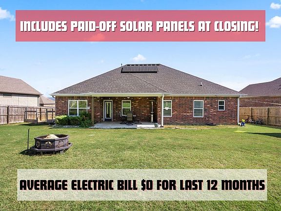Qualifies for $0 down! Just 9 miles from the University of Arkansas sits this adorable 4 bedroom home in the Hallmark-esque town of Prairie Grove. Enjoy the remaining days of summer in the fully fenced backyard or savor your morning coffee on the covered back patio. The interior boasts a split floor plan, with a spacious primary suite overlooking the backyard. The bright & open kitchen has stainless steel appliances, granite counters, pantry, & lazy susan! The open-concept living is nestled around the gas fireplace & flows to the eat-in kitchen. And while the home packs a big punch-- you will LOVE what the solar panels bring to your budget...owner has had $0 electric bills over the last 12 months! Enjoy the savings while cozied up this winter around the fireplace! Have a green thumb? You'll love the established garden beds, mature landscaping & ornamental trees! If you thought the days of 3.25% rates were gone, this home is eligible for a 3.25% VA assumable loan (must qualify). Fridge/washer/dryer all convey!