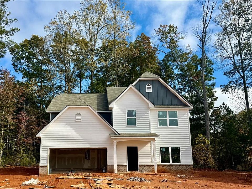 USDA Eligible! Lot 118 - Plan 4221-Features a Craftsman style exterior with a combination front elevation of brick, Hardiplank and board & batten. 5 bedroom, 3 bath, 2 story floorplan featuring a 2-story foyer, main floor guest/teen bedroom with two closets, dining room, and large kitchen with island. Spacious 2nd-floor primary suite dual vanities, large walk-in closet, garden tub, and separate shower. Other features include kitchen puck lights, arches, fireplace, and 2-car garage. Home is under construction and will be complete in 2 months. Builder will contribute $10,000 toward closing cost! Blinds, Screens, Glass Shower Door in Owner's Suite and Garage Door Opener added at no charge to Buyer!