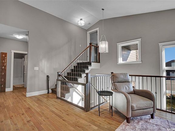 Welcome to this stunning custom-built modified bi-level by the reputable Cherry Creek Homes, perfectly positioned on a massive 52’ x 130’ lot backing green space and walking paths. With its low-maintenance exterior featuring stone accents and stylish hardy board siding, this home offers timeless curb appeal and lasting quality. Step inside to an open-concept layout highlighted by vaulted ceilings, hardwood flooring, and elegant maple railings. The large windows flood the home with natural light, creating a bright and inviting atmosphere. The spacious kitchen is designed for both function and style, featuring a corner pantry, gas range, and large island—perfect for family gatherings and entertaining. The main floor offers two generous bedrooms, while the private primary suite is tucked away on its own level—a true escape complete with a five-piece ensuite. The basement development is well underway, offering a large family room area, a rough-in for a future bathroom (currently featuring a temporary toilet and sink), an additional bedroom area, and a spacious utility/storage room. Enjoy the outdoors with a beautifully landscaped yard featuring mature trees, underground sprinklers, and a west-facing deck—ideal for relaxing evenings in the sun. There is an exposed aggregate patio and covered storage space under the deck and natural gas BBQ hookup. Simply move in and enjoy—this home combines thoughtful design, quality craftsmanship, and a peaceful location backing green space.