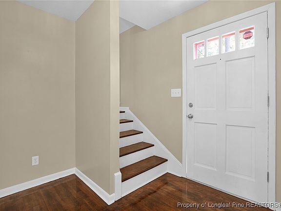 Lovely 3 bedroom, 2 bathroom home conveniently located less than 5 minutes from Fort Bragg. The beautiful modern kitchen offers white cabinets, sleek countertops, stainless steel appliances, and stylish tile flooring leading to the formal dining room. The spacious main level primary suite includes a sitting area with direct access to the back patio, along with an elegantly updated bathroom. Gorgeous hardwood floors run throughout the home. The second level features two nice sized bedrooms and a full bathroom. Outside, enjoy a fenced in backyard with the covered patio and a shed, providing extra storage space. Pets allowed up to 50 lbs. with a non refundable one time $300 pet fee.