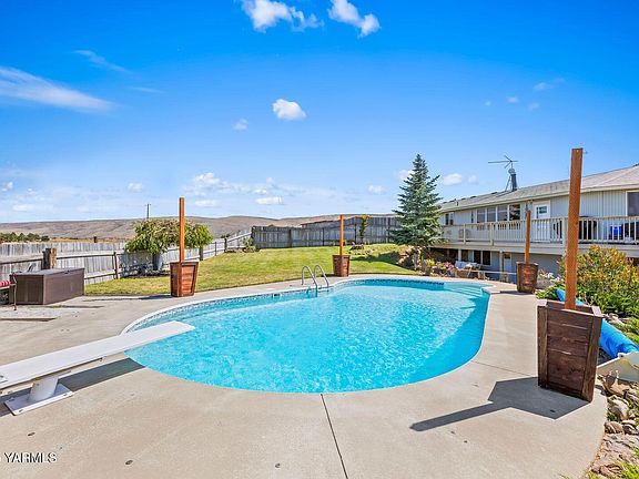 Welcome to this beautifully updated 5-bedroom, 3-bathroom home offering 3080-sq.ft. of versatile living space on 5 private acres in the peaceful countryside. Thoughtfully designed with both comfort and function in mind, the main level features an open-concept living room, a spacious kitchen perfect for gathering, and a convenient laundry area.The primary suite is a true retreat complete with a full en-suite bathroom featuring double sinks, dual shower heads, a large walk-in closet plus two additional closets, and a private balcony overlooking the in-ground pool.The daylight basement adds even more flexibility with a large family/rec room, two bedrooms, a full bathroom, utility room, and a bonus room that could serve as a sixth bedroom, office, or a home theater.Additional highlights include an updated electric forced air/AC heat pump system (installed in 2020), a circular driveway offering plenty of parking, and a 2-car oversized attached garage. Enjoy summer days by the in-ground pool with panoramic views of the Yakima Valley. The property also features a partial horse setup and ample space to explore, relax, or entertain. A rare opportunity to enjoy country living with modern updates, privacy, and room to grow!