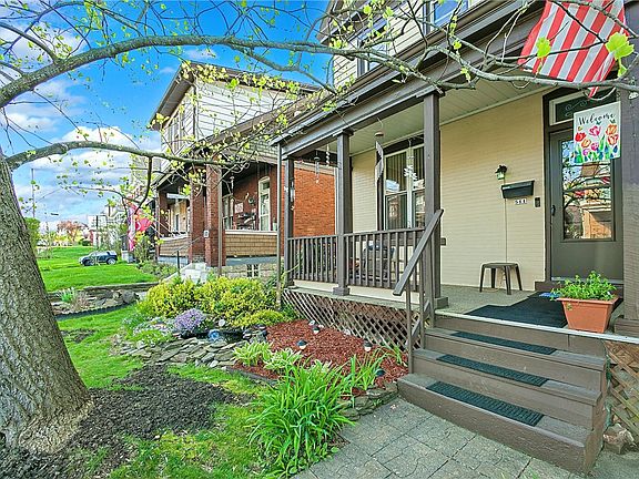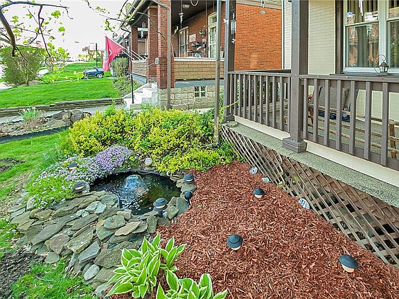 Cozy and well maintained 4 bedroom home with front porch to enjoy those upcoming warmer days and evenings. Relax listening to the waterfall in the front yard pond. Spacious living room. Large formal dining room for entertaining. Updated kitchen for cooking those gourmet dinners. Convenient 2nd floor laundry. Quaint yard with raised beds. Carport big enough for 2 cars. Shed is included. Convenient to shopping, schools, and major highways. Penn Trafford School District. Trafford Borough is a sidewalk community. Third floor nook is perfect for a sitting room.