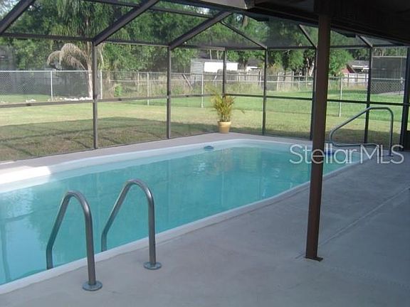 Spacious pool home situated on .34AC fenced lot. Updates to the home include A/C '15, re-pipe '03. The Master Suite features a walk-in closet. Kitchen has a complete appliance pkg., bar area and is open to the over-sized family room and dining room. French doors off the family room open up to the screen enclosed pool and covered patio area which offers lots of room for relaxing and entertaining. There is an inside laundry room and part of the garage has been converted in to a 4th bedroom. Conveniently located to I-4 and I-75 this home has easy access to everything.