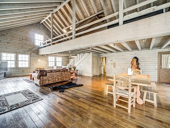 Come on home to mountain living! This long drive way wraps around to a freshly painted large log cabin, with an amazing covered deck to take in all the natural beauty this five acres has to offer. Once inside, you enter the massive living room with soaring ceilings and lots of natural light coming in from the French doors leading out to that new deck. the dining room is open to the living room, make this space feelso incredible large. The kitchen is split on two sides of a hallway, making it very spacious with plenty of counter space. The master bedroom and bath is on the main floor, as well as a second bedroom and bathroom for guests. Upstairs, you have an extra large loft, again with those soaring ceilings! On this level, you have four really large bedrooms and one bathroom. Space, that is the name of the game in this house. So much space.