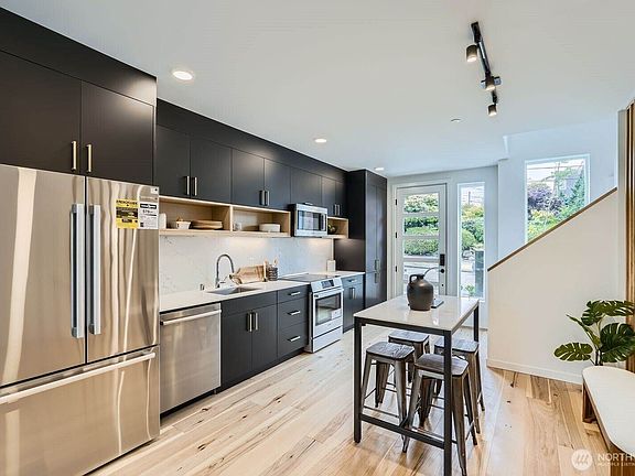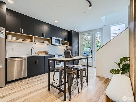 Limited Time:1.99% Interest Rate (Qualifications Apply) Trolley Vue by Green Canopy, an intimate collection of just 9 luxury townhomes nestled in Queen Anne's vibrant heart. Wake to soft morning light spilling through expansive windows, framing views of Seattle's iconic skyline, Lake Union and Mt Rainier. Step outside and find serenity in a landscaped courtyard or tend to fresh herbs in the P-patch garden bordering the community. Park in the secure-gated garage and return home to a space where modern elegance meets thoughtful design. Every detail invites you to slow down, breathe deep, and savor a lifestyle as dynamic and inspiring as the city itself. The future is here, steps from the Space Needle, and top tech campuses shaping tomorrow.