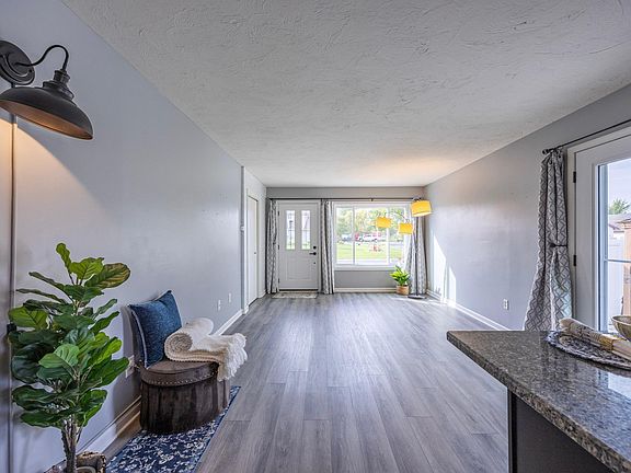 Welcome home, where curb appeal meets comfort starting with a clean concrete driveway and a charming front porch perfect for greeting friends or enjoying your morning coffee. Step inside the luxurious living room with beautiful finishes, creating an inviting atmosphere. The kitchen is ready for all your baking and meal prep, complemented by a unique coffee or wine bar area just off the kitchen. Off the living room a door leads you to your large, fenced backyard with lush, green grass, a concrete pad with a gazebo, and lots of room to run, create, or unwind. Down the hall, you’ll find a full bathroom with stylish tile finishes, along with two great bedrooms. The lower level features a fantastic family room, ideal for family game nights or relaxing with friends and a fun kid’s play space under the stairs. There are two additional bedrooms an additional full bathroom (heat lamps), providing plenty of space for everyone. The laundry area is conveniently downstairs, with hookups also available upstairs if desired. The two-car garage has carpeted attic space for storage, easily accessible via pull down attic stairs. A service door directly to your fenced yard allows easy access to your yard and storage shed. This home combines style, practicality, and outdoor fun, making it a wonderful place to live life to the fullest.