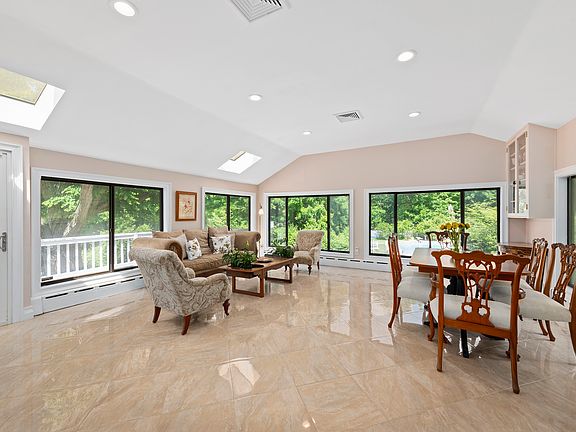 Comfortable one level living, privately set on two park like acres, with fenced rear yard. Relax by the tranquil 22 X 40 in ground pool surrounded by mature trees and flowering wisteria. Light filled expansive floor plan, walls of new windows with high ceilings. Impressive entry foyer with radiant heat, bright and airy great room with access out to deck and yard.Three bedrooms that lives like a four. Eat-in kitchen, living room with wood burning fireplace flanked by built-in bookcases. Large master suite, two additional bedrooms, bath, den/guest/office. Lovingly maintained, additional 1,000 SF in lower level with bath.Two car garage, central A/C, total convenience and ease. Minutes to town and Merritt Parkway.