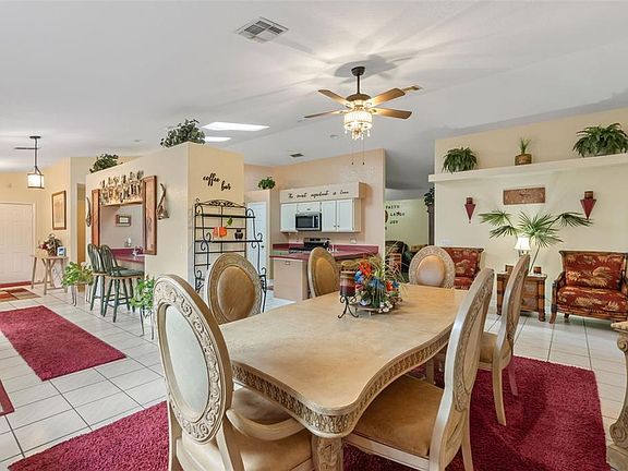 Welcome to 511 Marcia Loop, a beautiful and spacious 4-bedroom, 2.5-bath home offering over 2,150 sq. ft. of living space, plus a 14' x 18' Florida room and a cabana-enclosed hot tub—perfect for entertaining in style. With a newer roof (2020), A/C system (2020), and leased solar panels (2024) keeping the average electric bill around $35/month, this home combines comfort, fun, and efficiency. Step inside and you’ll immediately appreciate the sense of space and natural light. Soaring ceilings and two updated skylights enhance the bright, open atmosphere, while two large living areas offer flexibility for everyday living or special gatherings. One living area could be used as a formal dining room, while the second serves as a comfortable family room. The kitchen is thoughtfully designed with entertaining in mind and features stainless steel appliances, two closet pantries, and two breakfast bars, one of which includes a secondary prep sink—perfect for cooking, hosting, or grabbing a casual bite. The spacious primary suite is a peaceful retreat, highlighted by rich wood flooring, a walk-in closet, and an en-suite bathroom with an updated handicap-accessible walk-in shower. Three additional bedrooms are generously sized and conveniently located near the second full bathroom, which includes a tub. A separate half bath is ideal for guests. At the back of the home, the enclosed Florida room brings the outdoors in with its wall of windows, durable tile flooring, and a built-in counter and cabinetry—great potential as a summer kitchen or the perfect serving area. From here, step outside into the private backyard oasis where you'll find low-maintenance landscaping with pavers, decorative rock, and mature plantings. Enjoy grilling and dining on the paver patio, then unwind in the enclosed cabana with a hot tub featuring a soothing waterfall and a lounging seat—a standout space for entertaining and relaxing. A powered storage shed offers a great place for tools, lawn equipment, or hobbies, and could even be converted into a small workshop or creative studio. Additional features include a 1-car garage with laundry space, screened front porch, large fruit- bearing mango tree, irrigation system with timer, rain gutters, new window screens, and multiple interior storage/linen closets. The community of Crystal's Landing is located within 5 minutes of Publix, Walmart, restaurants, Legoland FL and the new Advent Health ER. Whether you're looking for a spacious family home, a low-maintenance property to retire in, or an entertainer’s dream close to Central Florida’s attractions, this home delivers on all fronts. Centrally located between Tampa and Orlando, commuting to theme parks or international airports is a breeze. Don’t miss the chance to own a home that offers space, style, efficiency, and the ultimate in backyard entertaining. Schedule your private showing today!