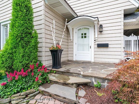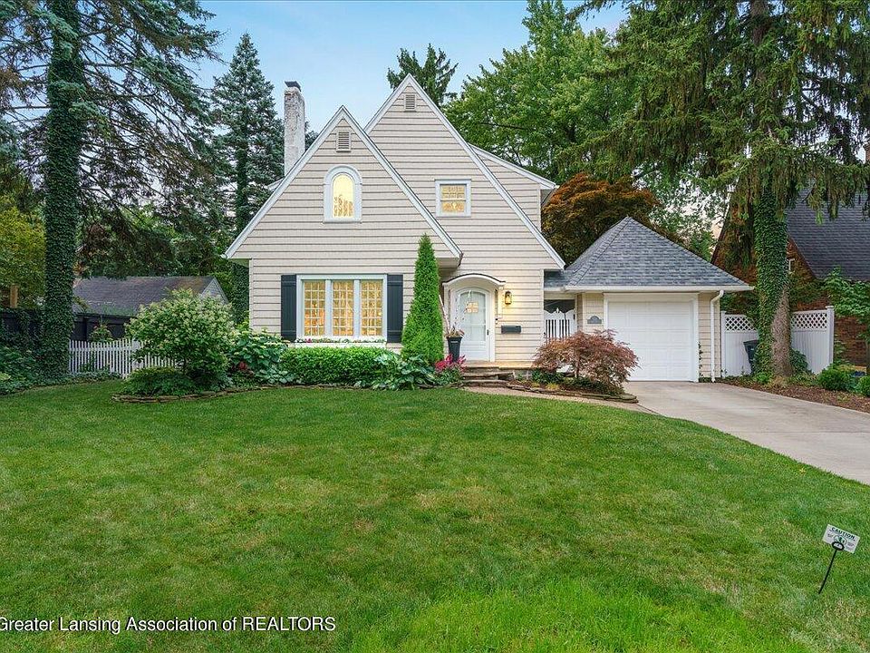 Immerse yourself in the timeless elegance of this stunning English Tudor home, perfectly situated in the heart of East Lansing. This residence seamlessly blends the charm of the 1920s with modern luxury, located in the highly sought-after Ardson Heights neighborhood. Enjoy unparalleled convenience with Michigan State University's campus, downtown East Lansing, farmers markets, fine dining, and abundant shopping all within walking distance. This exceptional five-bedroom home is adorned with luxurious finishes throughout, starting at the beautiful arched front door. Enter the spacious foyer and notice the gleaming hardwood floors and abundance of natural light. The spacious living room features custom molding and an elegant fireplace, flowing effortlessly into the open-concept dining area. The gourmet kitchen, completely redesigned and remodeled in 2007, boasts ample cabinet space, stunning granite countertops, a gas stovetop, a central island, and a double oven. The four-season room, with radiant heated floors and new windows, offers the perfect space for relaxation and year-round enjoyment. The entry door opens to a serene patio, ideal for al fresco dining and entertaining in the beautifully landscaped backyard, fully enclosed by an invisible fence and privacy fence on each side.