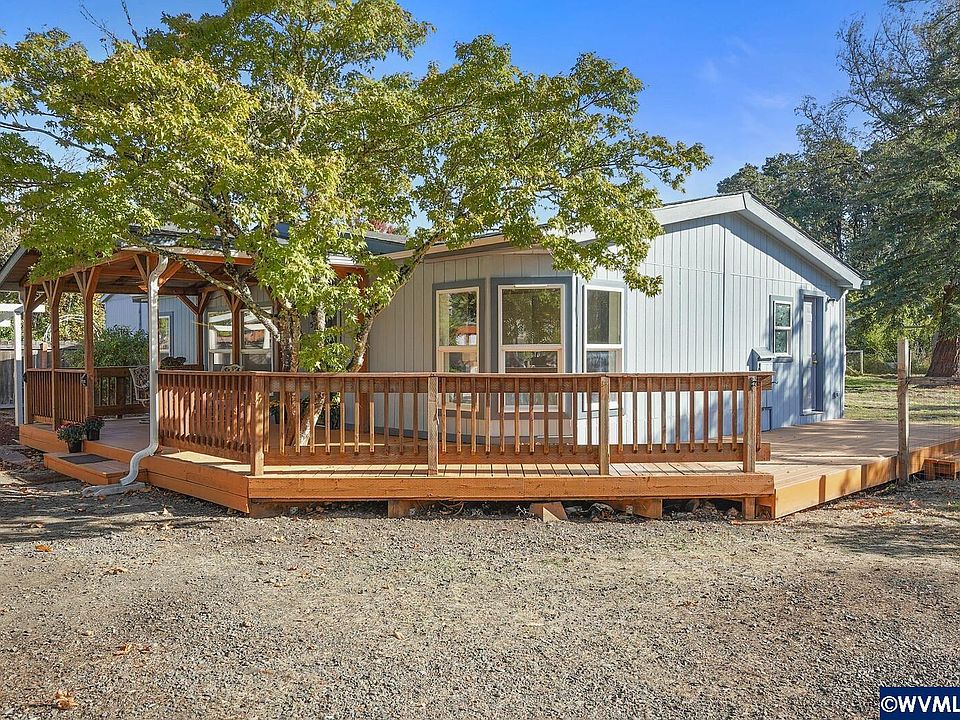 Home is move-in ready, has a huge yard, and the potential to partition. Recent updates include flooring, furnace, water heater, paint, roof, deck and more. Huge covered front porch and wraparound deck, plus a 2nd deck with built-in seating. Roses, shade & fruit trees, and plenty of off-street parking for your RV, trailer, etc. The corner lot location provides easy access to the backyard. Just a short drive from Corvallis, OSU, or the coast. Incredible price point and potential.