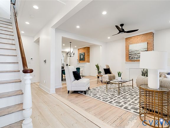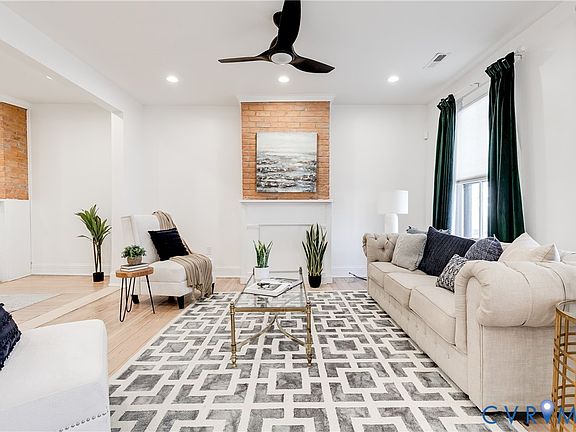 Located in the heart of Church Hill and just steps from local favorites like Chimbo Sandwich Shoppe, Spotty Dog Ice Cream, and Riverbend Roastery, 511 N 29th Street offers nearly 2,500 square feet of beautifully finished living space with 4 bedrooms, 3 full baths, and 9-foot ceilings on both levels. Inside, a thoughtful layout welcomes you with original pine floors, decorative exposed-brick fireplaces, and recessed lighting throughout both the living and dining rooms. The updated kitchen boasts soft-close, dovetail cabinetry featuring glass uppers and a built-in wine rack, Quartz countertops, tile backsplash, and stainless steel appliances. Just past the kitchen there’s a flexible den or office that opens through sliding glass doors to a stamped concrete patio - perfect for entertaining or relaxing outdoors. A spacious first-floor bedroom includes a walk-in closet and direct patio access, while the nearby full bath features a tiled tub/shower and stylish, on-trend finishes. A dedicated laundry area with side-by-side washer and dryer adds convenience on the main level. Upstairs, the enormous primary suite offers a true retreat - complete with a brick fireplace, recessed lighting, ceiling fan, and a custom walk-in closet with built-ins. The luxurious ensuite bath boasts a double vanity, large soaking tub with chandelier and electric fireplace, Bluetooth fixtures, and an oversized walk-in shower with dual shower heads. Two additional bedrooms sit at the front of the home, each with ample space and charm - the larger featuring its own exposed brick fireplace and walk-in closet. Outdoors you’ll enjoy that easy access to the rear patio, a large fully fenced yard, storage shed, and off-street parking. This home has been fully restored and its location can’t be beat!