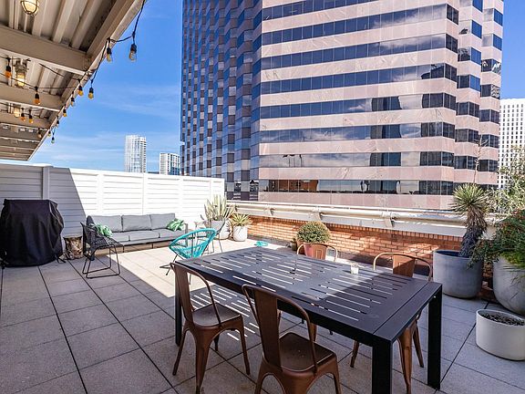 Expansive 500 square foot rooftop patio with downtown/city views and privacy fence. Perfect for outdoor dining, lounging and entertaining.