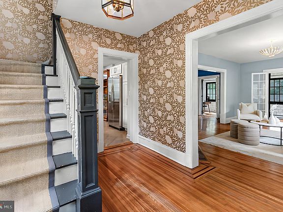 Welcome to 511 N Chapelgate Lane, a 1911 dutch colonial that offers a perfect blend of historic character and modern comforts. Situated on a .46-acre lot, this 3-bedroom, 2.5-bathroom home features nearly 2,500 square feet of professionally designed living space. Original architectural details, including inlaid hardwood floors and decorative cast iron radiators, are complemented by stunning updated fixtures, skylights, and wallpaper accents. A wood-burning fireplace anchors the living room and opens to the formal dining room. An adjoining office space blends the wood-shingle, shuttered, exterior style with the home’s interior, creating a cohesive and sophisticated aesthetic. The updated kitchen features open shelving, granite counters, heated floors, a French gas range, a marble-topped island with additional storage, and built-in banquette. Half bath just is high on style and drama. Stairs off the kitchen carry you to a sun drenched two-story great room featuring a vintage industrial art installation and heated floors, ideal for gatherings or quiet reflection. French doors lead to a bi-level deck and spacious, low-maintenance fenced backyard featuring fixed outdoor speakers, a gazebo, and a kids playground set. Upstairs, the primary suite offers a walk-in closet and a large private bath. The two additional bedrooms are generously sized, one with a playful loft and mural, the other with charming porthole storage, making each space unique and full of character. Classic black-and-white tiled hall bathroom offers timeless vintage charm. Practical amenities include ample storage tucked away in unexpected places, electric fence, and two car garage. A voluntary community association organizes seasonal events that foster connection and neighborhood spirit. All of this is situated in a quiet, friendly neighborhood convenient to green spaces, commuter routes, restaurants, and shopping.