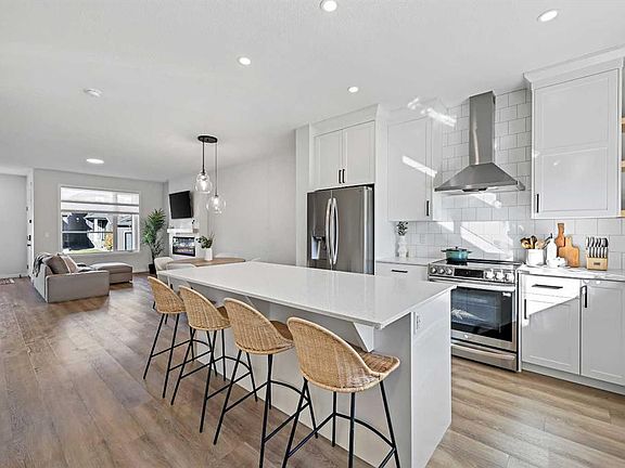 EXCITING NEW BOW RIVER COMMUNITY | TRUCK-SIZED 26' x 22' GARAGE | STEPS TO THE WOLF WILLOW DOG PARK | ORIGINAL OWNER | IMMACULATE CONDITION Are you ready to live in one of Calgary’s most exciting new communities? Welcome to Wolf Willow, a vibrant neighbourhood perfectly positioned just steps from the off-leash dog park, scenic ponds, pathways, parks, shopping, golf, and the breathtaking Bow River Valley and Fish Creek Park. With schools, South Health Campus, transit, and major south expressways nearby, this is the ideal blend of convenience and lifestyle. Meticulously maintained by the original owner, this Morrison-built home sits on a sunny, south-facing, oversized lot and features underground front-yard sprinklers, a newer 26’ x 22’ detached garage with a 9'8" ceiling height, a man door, and is fully insulated and drywalled. Offering over 1,529 sq. ft. of stylish living space, this home features 3 bedrooms, 2.5 bathrooms, and an unspoiled basement ready for your personal touch. Bonus: Dual-tank, non-electrical water softener system. Step inside to a bright, open-concept design highlighted by 9' ceilings, luxury wide-plank flooring, and a cozy electric fireplace. The chef-inspired kitchen is the showpiece of the main floor, showcasing: Ceiling-height cabinetry with classic white shaker doors Quartz countertops and a full-height white subway-tile backsplash Central island with seating for four and a white under-mount granite sink Upgraded stainless steel appliances, including a slide-in range, built-in microwave, and chimney hood fan Walk-in pantry with a custom sliding barn door and stylish recessed lighting A smartly designed rear mud room with wood wall detailing and a half bath leads to the low-maintenance backyard featuring an 18' x 12' concrete paver patio and walkway—perfect for BBQs and entertaining. Upstairs, the primary retreat offers a spa-like 3-piece ensuite and a walk-in closet. Two additional bedrooms, a full bath, and an upper laundry room complete the family-friendly layout. Additional upgrades include modern LED lighting, upgraded plumbing fixtures, custom feature walls, and a covered front porch that adds welcoming curb appeal accented by stonework. This home is more than just a place to live—it’s a lifestyle, with nature, community spirit, and urban conveniences right at your doorstep. Don’t wait—book your private showing today with your favorite REALTOR®!