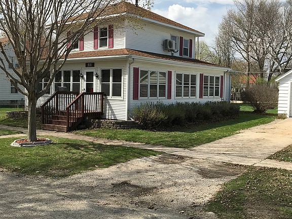 Stylish home just three blocks from the central business district with heated double garage, patio, and awesome enclosed wrap-around porch. This well-cared-for home features near-new roof, permanent siding, cozy triple-zoned hot water heat, eat-in kitchen, formal dining room, and complete set of appliances are included