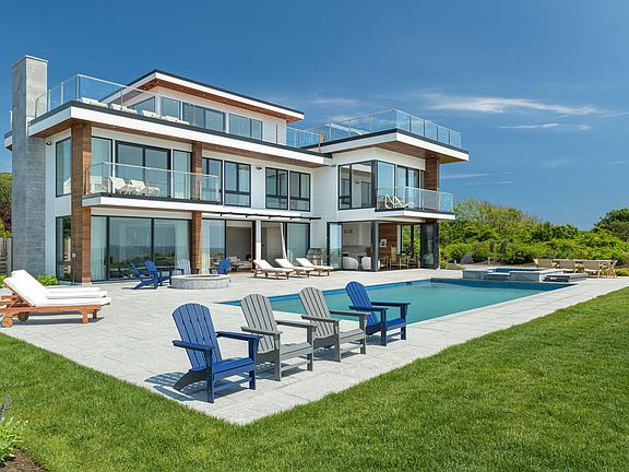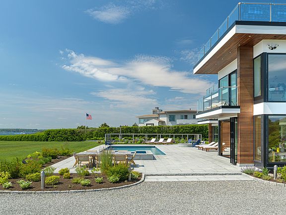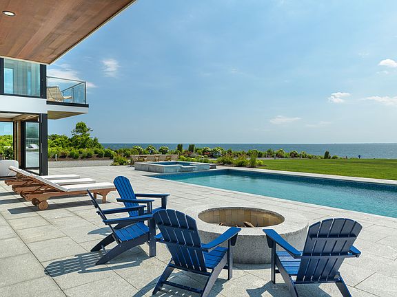 NEWPORT SUMMER LUXURY LIVING ! June, July, August 25 * This coveted coastal estate on Ocean Drive features exquisite craftsmanship, stunning ocean views throughout all rooms while boasting luxe contemporary finishes. Delight in hosting in grand style as the glass walls fold back to the expansive granite patio, pool, hot spa tub, fire pit and gas grill- all while basking in the sunset ocean views. Chefs and food enthusiasts will love the Wolf range & 3 ovens (1 is steam!) in the open kitchen as well as 3 dining areas including al fresco for 8. The open living room has excellent sound/entertainment system and also integrates to the outside smoothly. Up the mahogany stairs to the 4 Bedrooms (King & Queen beds) with modern closed cell insulation that is sound cancelling for peaceful sleep. Expansive sundeck off of the 5th bedroom (4 Queen beds and full bathroom) offers lounging, sunning and recharging with sweeping views to Castle Hill and Brenton Point. Castle Hill Beach access included. Landlord's cleaners at tenants expense